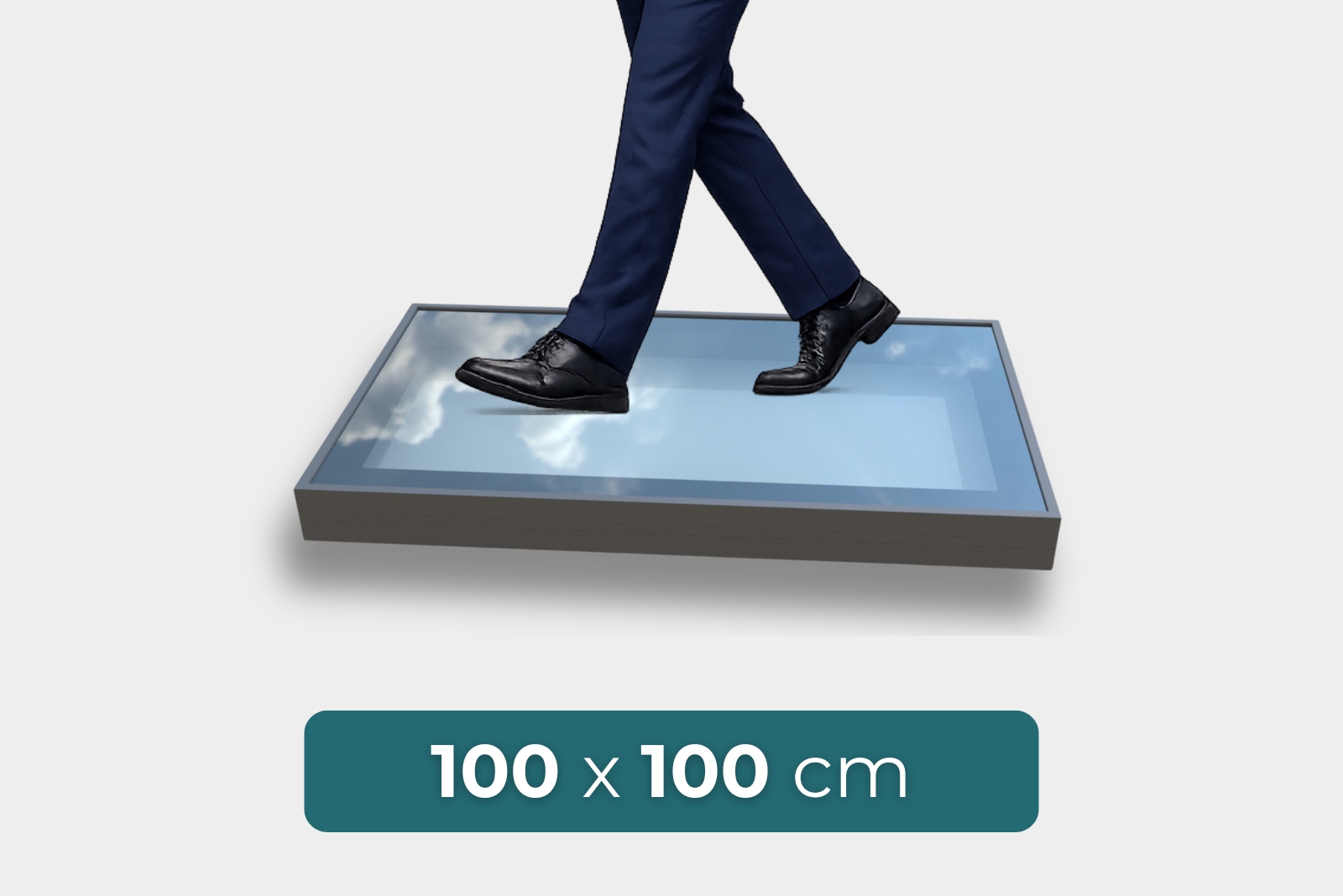 Unsere begehbaren Elemente bestehen aus drei Schichten 8 mm starkem, gehärtetem Glas, die miteinander laminiert sind, um eine leichtere, aber dennoch stabile begehbare Oberfläche zu erhalten. Die Dicke des oberen Glases unserer Elemente beträgt 25,5 mm und ist mit einem Komponentenlaminat versehen, was sie zu einem der sichersten und thermisch effizientesten Produkte macht, die Sie kaufen können.