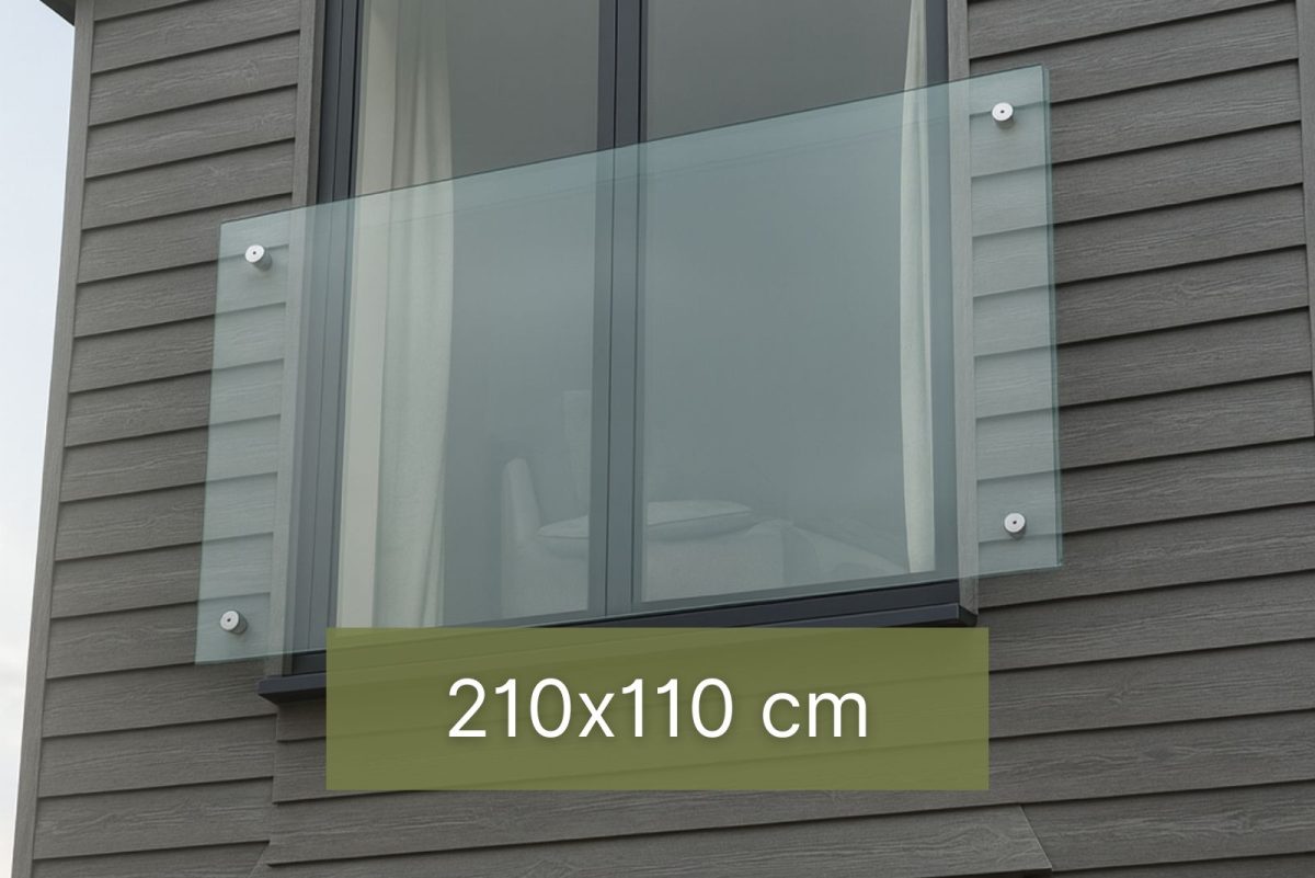 Rahmenloses Glas-Juliet-Balkonsystem – 210cm x 110cm mit Glasadaptern